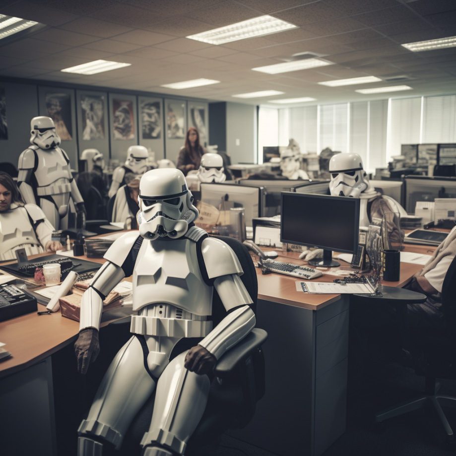Prompt: Sci-fi Star Wars in the office